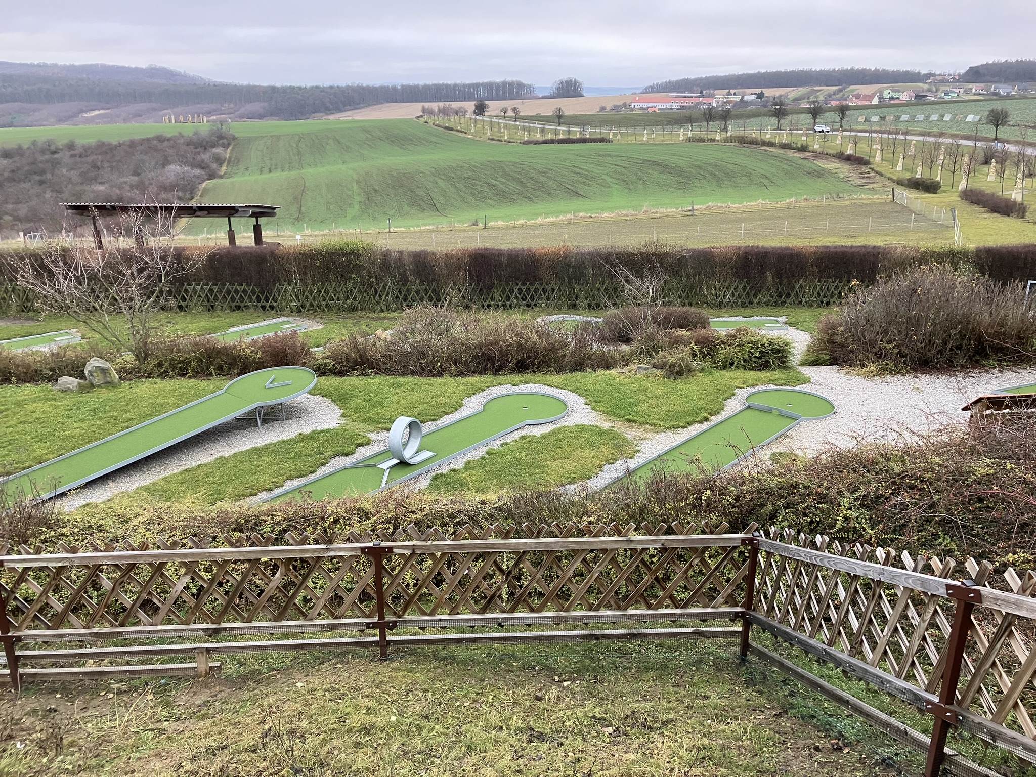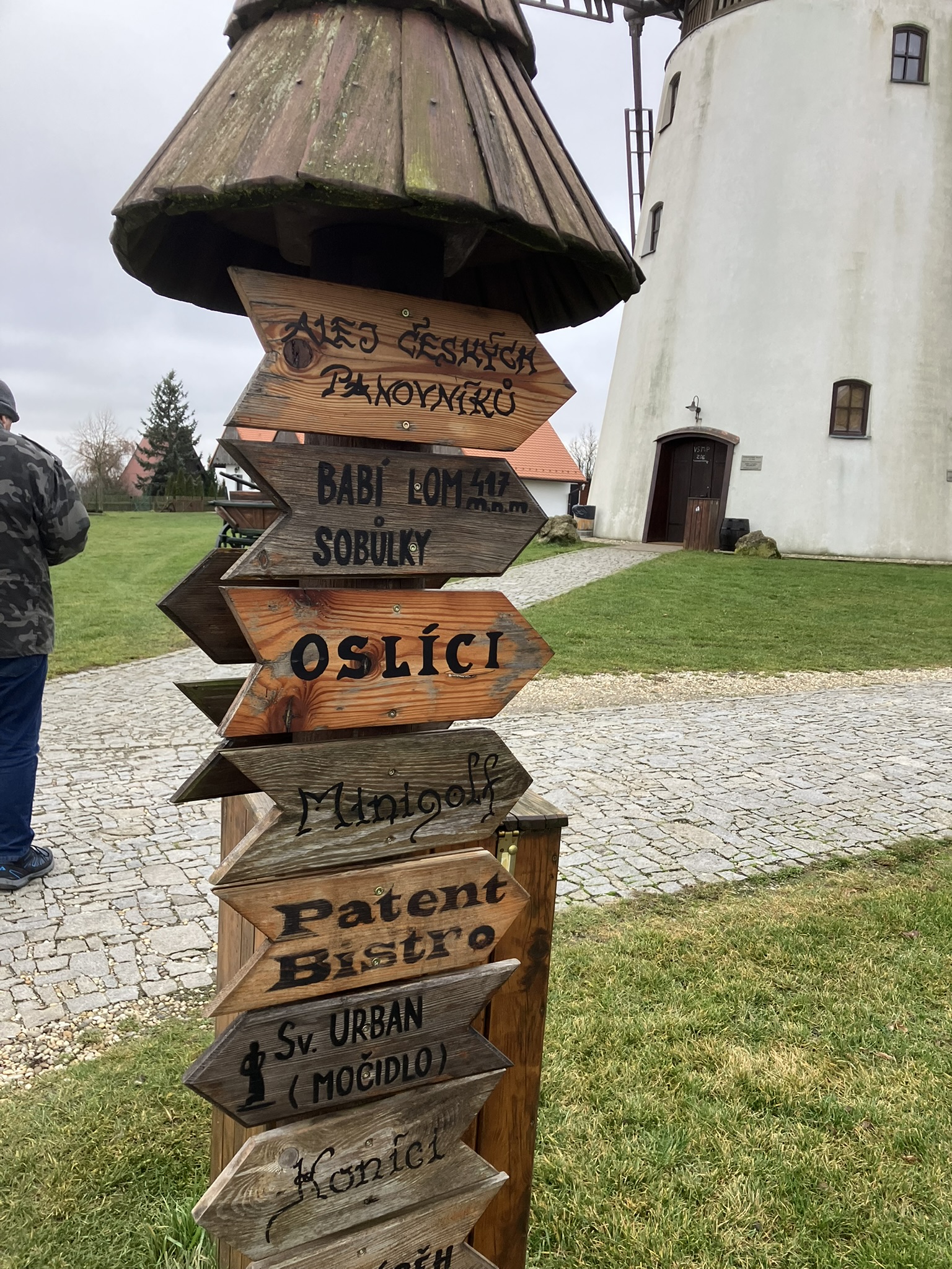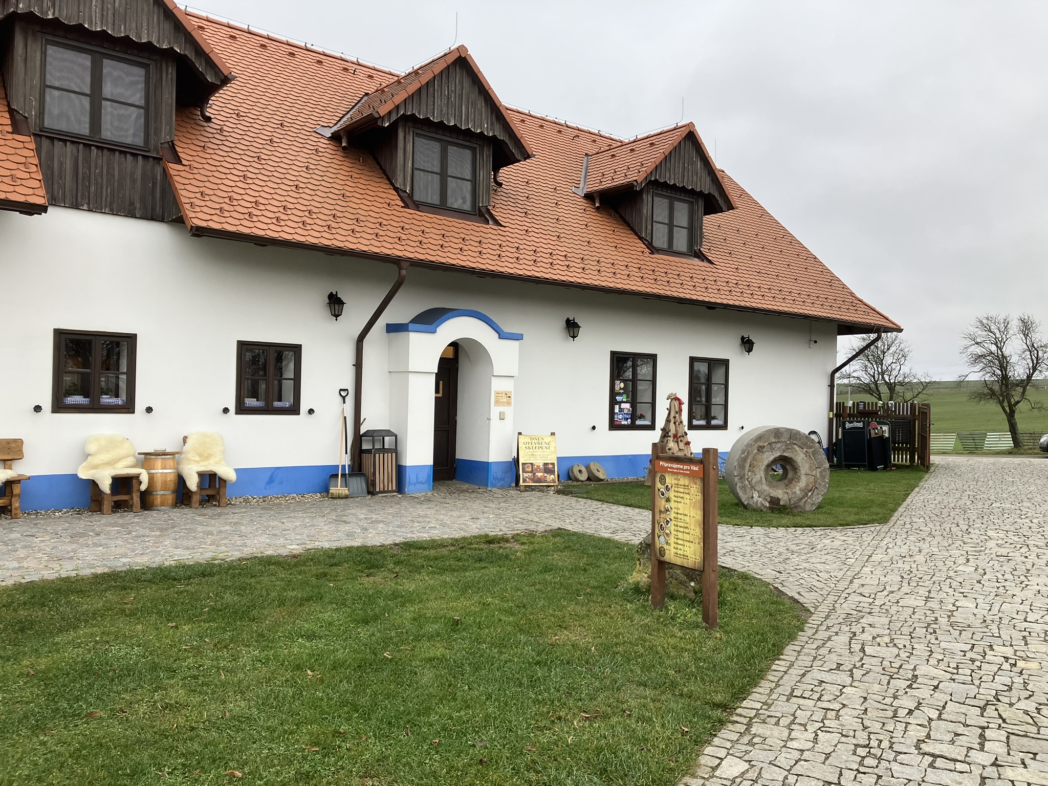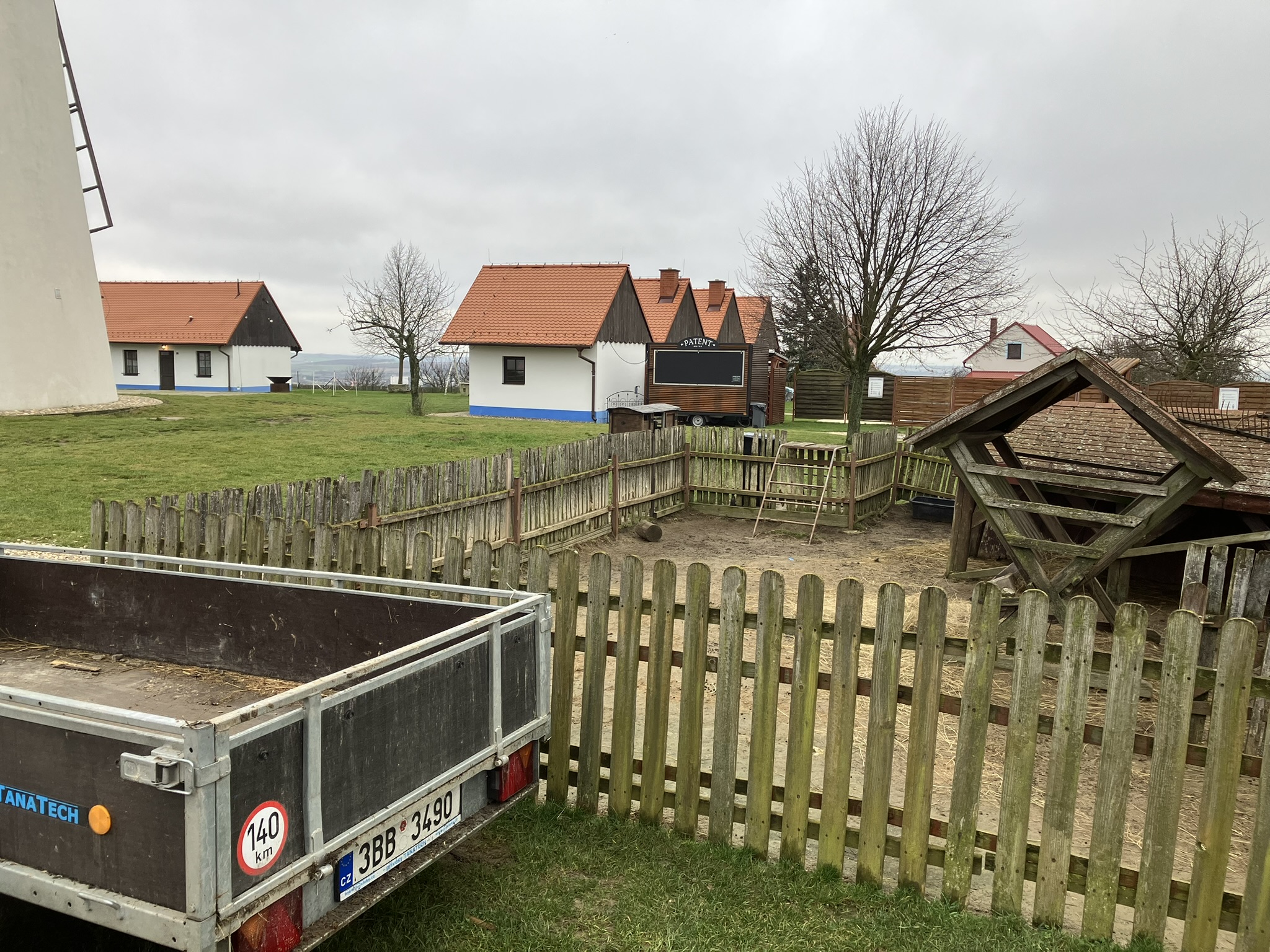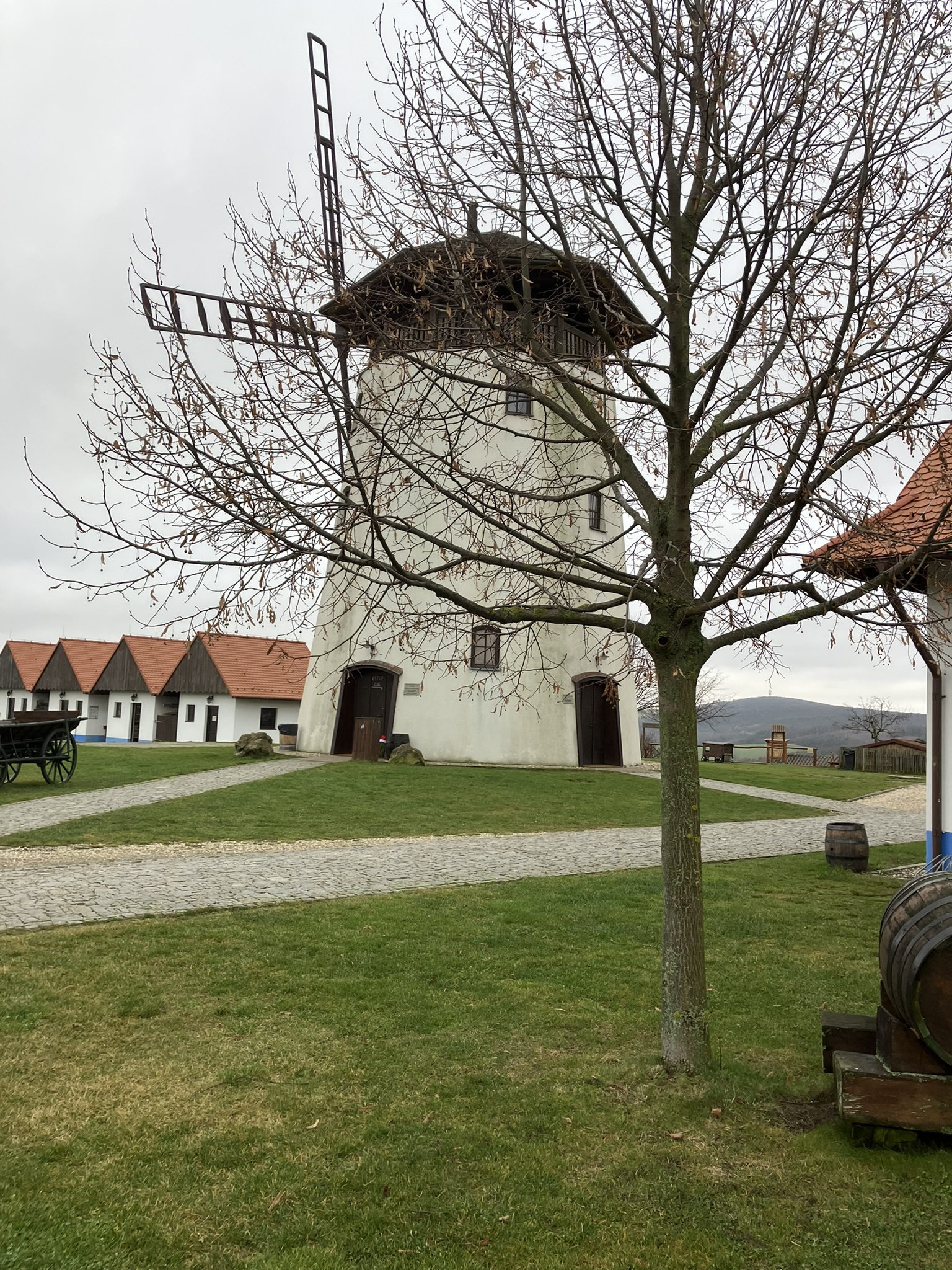 Dominantou areálu je větrný mlýn-rozhledna, odkud se otevírá krásný výhled na Kyjov a celé okolní Slovácko – ideální místo na zpomalení i fotku do alba 📸