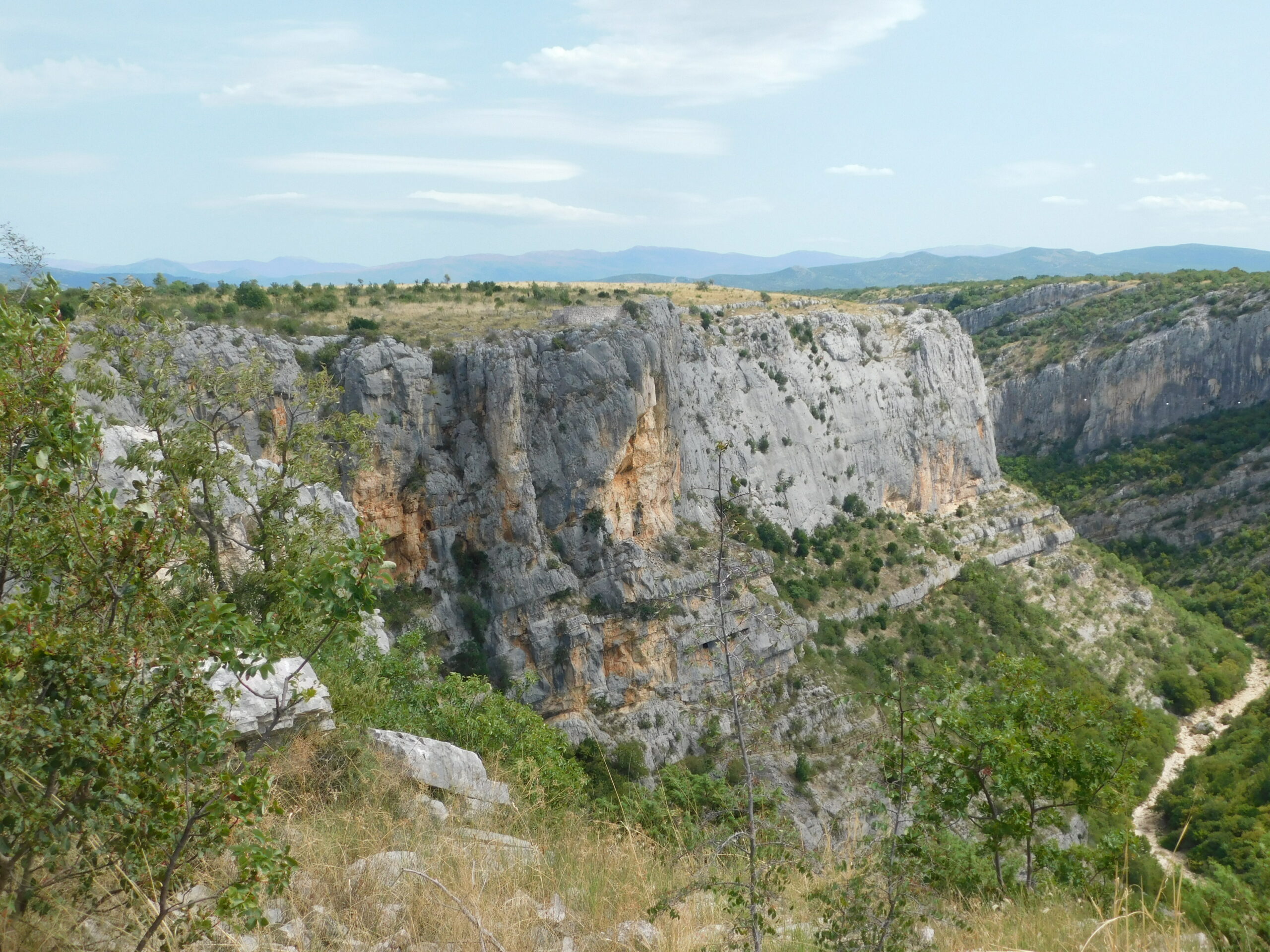 Při návštěvě NP Krka jsme přejížděli na další část NP – Roški slap a po cestě jsme se zastavili na vyhlídce na kaňon Čikovo. Již když jsme projížděli kaňonem, tak jsme byli uchváceni, takže na konci když jsme viděli možnost parkování a jít si to prohlédnout, tak jsme neodolali. Sice procházka na vyhlídku byla pár minut a byli jsme zde úplně sami, ale cestička uprostřed rozpálené přírody v nás vzbuzovala trochu obavy ze zvířat např. hadů v okolí. Naštěstí vše dobře dopadlo 🙂